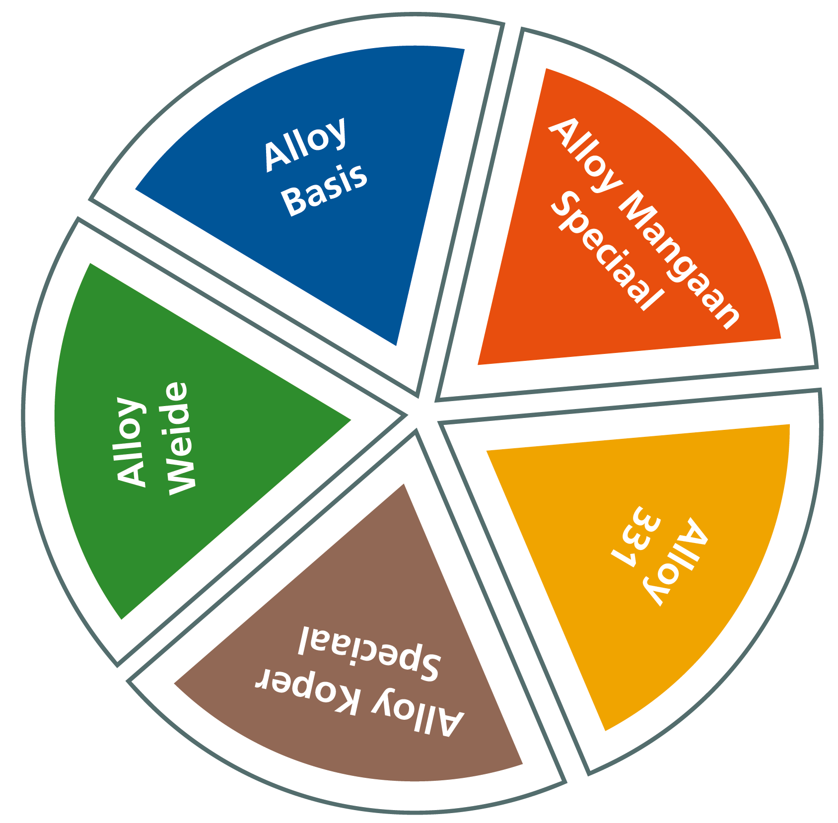 Alloy Weide : voor het bijstrooien van essentiële elementen op grasland. Alloy Mangaan : voor het toevoegen van hoofdzakelijk extra mangaan. Alloy Koper : voor het toevoegen van hoofdzakelijk extra koper. Alloy Basis : voor het opheffen van algehele tekorten. Alloy 331 : voor extra zink, mangaan en borium.